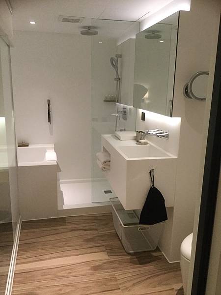 淋浴間滿小間的,但胖子我還是洗得很開心,只是水溫最高溫好像固定住了,水壓不太大(但也沒很小啦),淋浴間裡提供超好用的Pola Showerbreak蜂王乳系列,我一直想再藥妝店找到,後來才知道這個要特殊管道訂購才有。