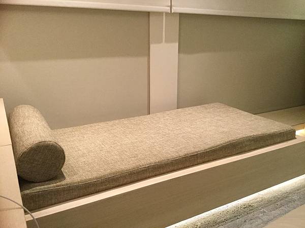 床頭的部分除了有可以放手機、眼鏡的空間,也貼心的準備了兩種夜燈,躺著的時候和睡覺的時候用不同方向的燈光剛剛好,插座也準備了兩個喔!